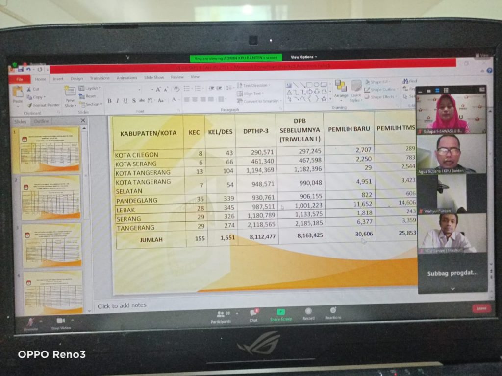 Badan Pengawas Pemilihan Umum (Bawaslu) Provinsi Banten hadiri rapat dalam rangka Pengawasan Rekapitulasi Daftar Pemilih Berkelanjutan Semester 1 Tahun 2021 tingkat Provinsi Banten secara daring. Kamis, (08/07/2021).