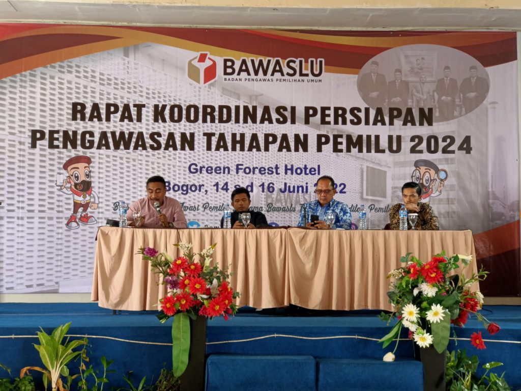 Bogor, Badan Pengawas Pemilihan Umum - Tepat pada tanggal 14 Juni 2022 ,sebagaimana dijelaskan dalam PKPU Nomor 3 Tahun 2022, tahapan penyelenggaraan Pemilu dimulai. Guna merapatkan barisan, kesatuan komando Bawaslu RI menggelar kegiatan Rakornas Persiapan Pengawasan Tahapan Pemilu Tahun 2024, Bogor (14-16/06/22). Kegiatan tersebut dihadiri oleh seluruh Anggota Bawaslu Koordinator Divisi Pengawasan dan Anggota Bawaslu Koordinator Divisi Hubungan Masyarakat serta Kepala Bagian Pengawasan se-Indonesia.