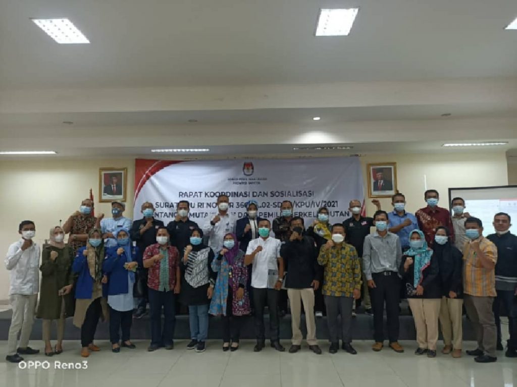 Bawaslu Provinsi Banten dalam hal ini Koordinator Divisi Pengawasan dan Hubal Nuryati Solapari hadiri Rapat koordinasi dan sosialisasi surat KPU RI, tentang Pemutakhiran Data Pemilih Berkelanjutan di Aula Kantor KPU Provinsi Banten. Rabu, (19/05/2021).
