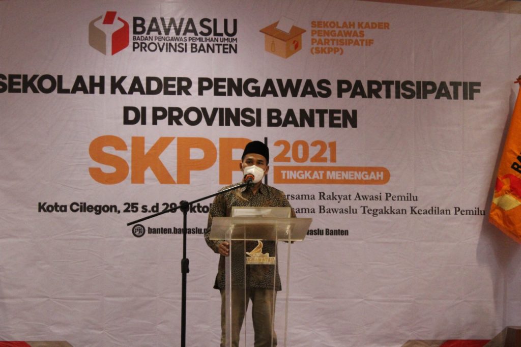 Cilegon, Badan Pengawas Pemilihan Umum – Bawaslu Provinsi Banten menggelar kegiatan Sekolah Kader Pengawas Partisipatif (SKPP) tingkat menengah di Hotel Royal Krakatau Cilegon, Senin-Jumat (25-30 Oktober 2021). Kegiatan SKPP tingkat menengah ini merupakan kelanjutan dari kegiatan SKPP tingkat dasar yang sebelumnya diselenggarakan di 2 titik Provinsi Banten, yaitu titik Kota Serang yang terdiri dari peserta perwakilan Bawaslu Kota Serang, Bawaslu Kabupaten Serang, Bawaslu Kota Cilegon, Bawaslu Kabupaten Pandeglang, serta Bawaslu Kabupaten Lebak dan titik Kota Tangerang yang terdiri dari peserta perwakilan Bawaslu Kota Tangerang,Bawaslu Kota Tangerang Selatan, dan Bawaslu Kabupaten Tangerang. Kegiatan yang berlangsung selama lima hari ini dibuka oleh Ketua Bawaslu Provinsi Banten Didih M. Sudi dan Anggota Bawaslu Provinsi Banten Nuryati Solapari.