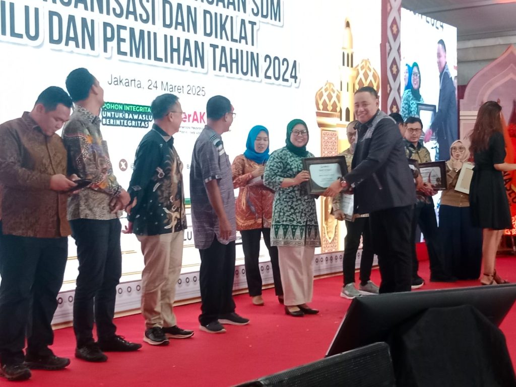 Anggota Bawaslu Provinsi Banten Liah Culiah saat Menerima Penghargaan SDMO Award, Senin (24/03/2025).