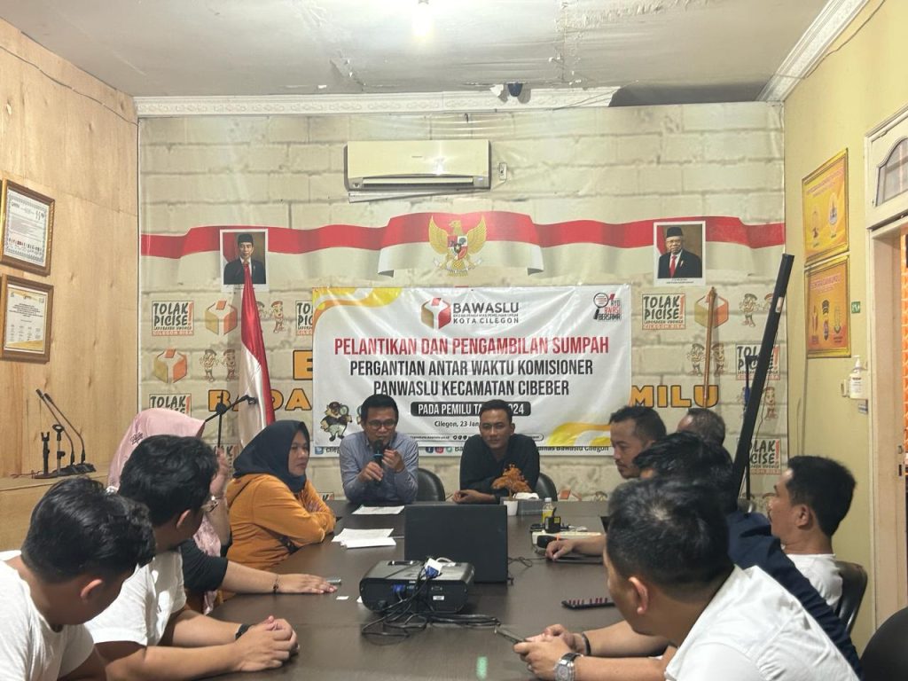 Anggota Bawaslu Provinsi Banten Badrul Munir saat memberikan arahan sebelum pelaksanaan patroli pengawasan di wilayah Kota Cilegon, Senin (12/02/2024)
