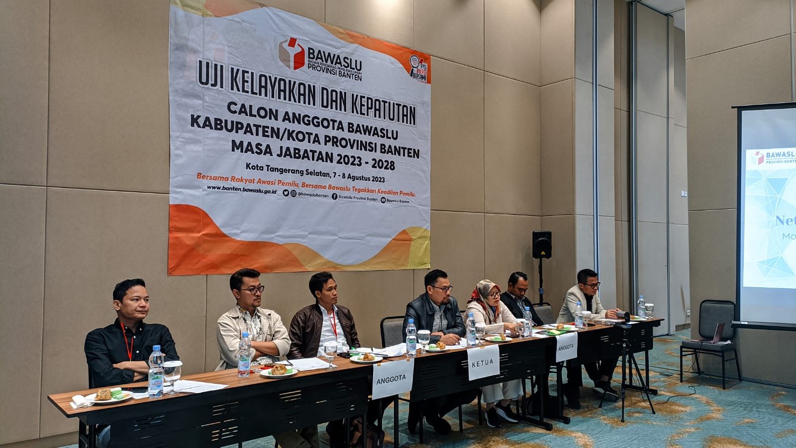 Tangerang Selatan, Bawaslu Banten - Calon Anggota Bawaslu Kabupaten/Kota se Provinsi Banten hari ini (Senin, 7/8/2023) mengikuti uji kelayakan dan kepatutan di salah satu tempat di Kota Tangerang Selatan. Uji kelayakan dan kepatutan ini dilakukan terhadap 76 calon anggota Bawaslu kabupaten/kota Periode 2023-2028 di Provinsi Banten.