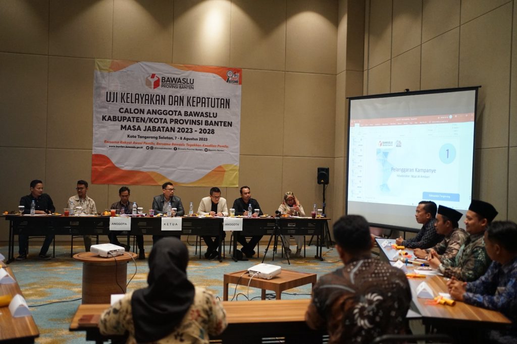 Diungkapkan Anggota Bawaslu Provinsi Banten Kordiv Hubungan Masyarakat dan Datin Sumantri bahwa Uji Kelayakan dan Kepatutan untuk di Banten dilaksanakan selama 2 (dua) hari 7-8 Agustus 2023, yang mana pada hari pertama terdapat 6 (enam) kabupaten/kota yang dilakukan uji kelayakan dan kepatutan atau berjumlah 60 (enam puluh) peserta calon anggota Bawaslu kabupaten/kota. Sementara untuk besok (8/8/2023) ada 2 (dua) kabupaten/kota atau sejumlah 16 (enam belas) orang peserta calon.