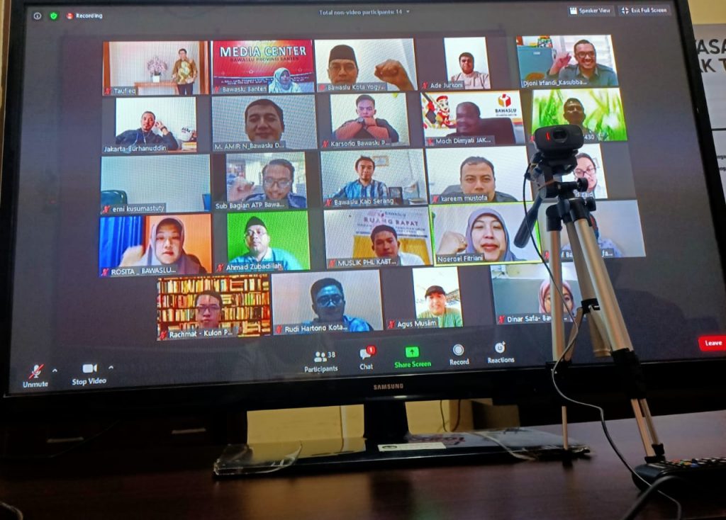 Bawaslu Banten mengikuti rapat virtual yang diselenggarakan Bawaslu RI tentang evaluasi pelaksanaan Pengawasan Partisipatif (Rabu/30/06/2020). Hadir pada kesempatan tersebut Kordiv Pengawasan Bawaslu Banten dan Kordiv Pengawasan Bawaslu Kab/Kota se-Banten.