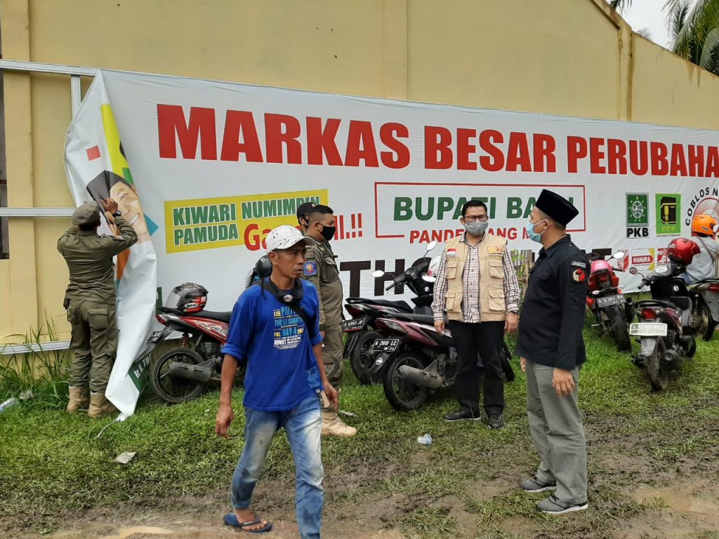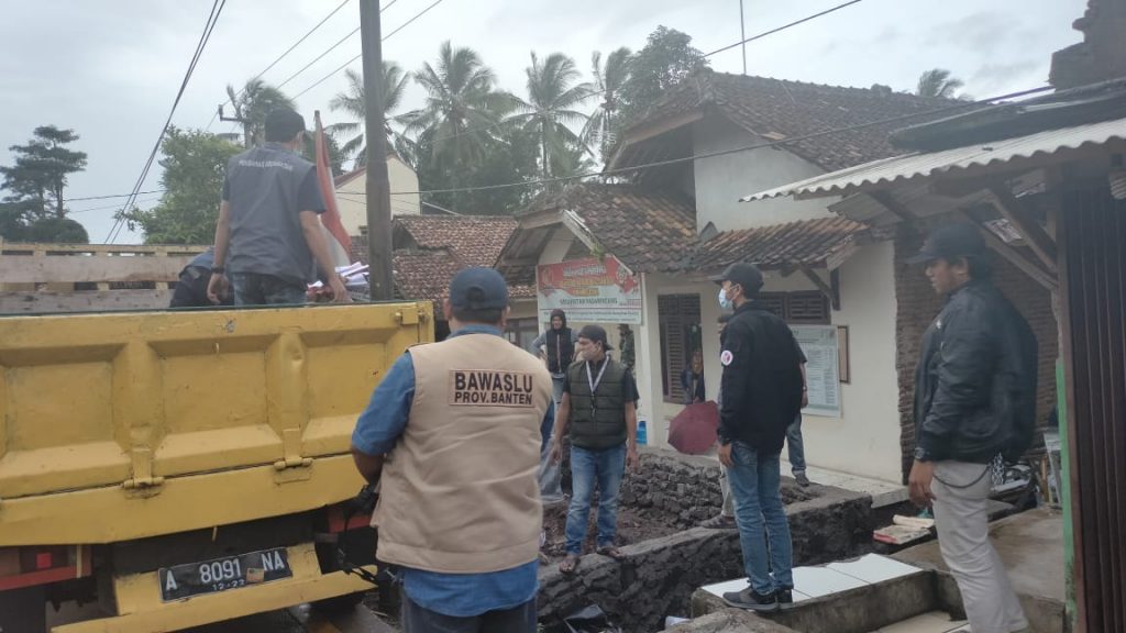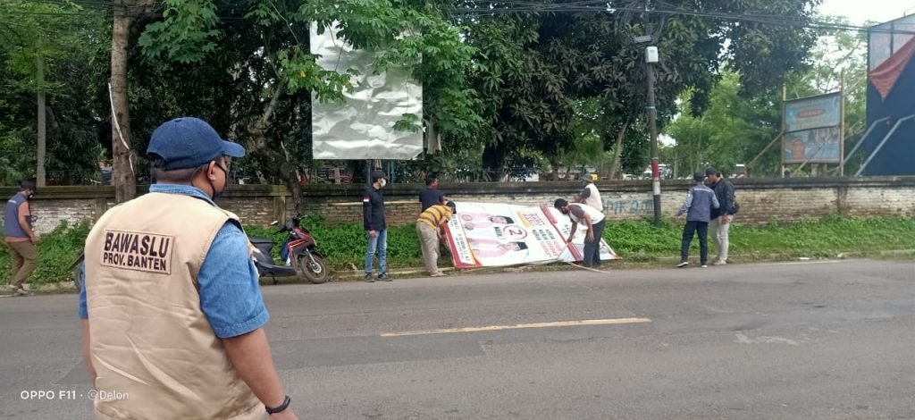 Banten, Badan Pengawas Pemilihan Umum - Tepat di hari pertama masa tenang Pemilihan Serentak 2020, Bawaslu Provinsi Banten melakukan patroli pengawasan di 4 Kabupaten/Kota yang menyelenggarakan Pemilihan, Minggu (6/12/2020). Kegiatan ini dilakukan untuk memastikan bahwa kegiatan kampanye, baik secara langsung maupun media (cetak/elektronik/daring), sudah tidak dilakukan lagi. Selain itu, Bawaslu juga melakukan pengawasan terhadap adanya praktik politik uang serta alat peraga kampanye (APK) yang masih terpasang di sejumlah tempat. Berikut foto-foto pelaksanaan patroli pengawasan oleh Bawaslu Provinsi Banten.