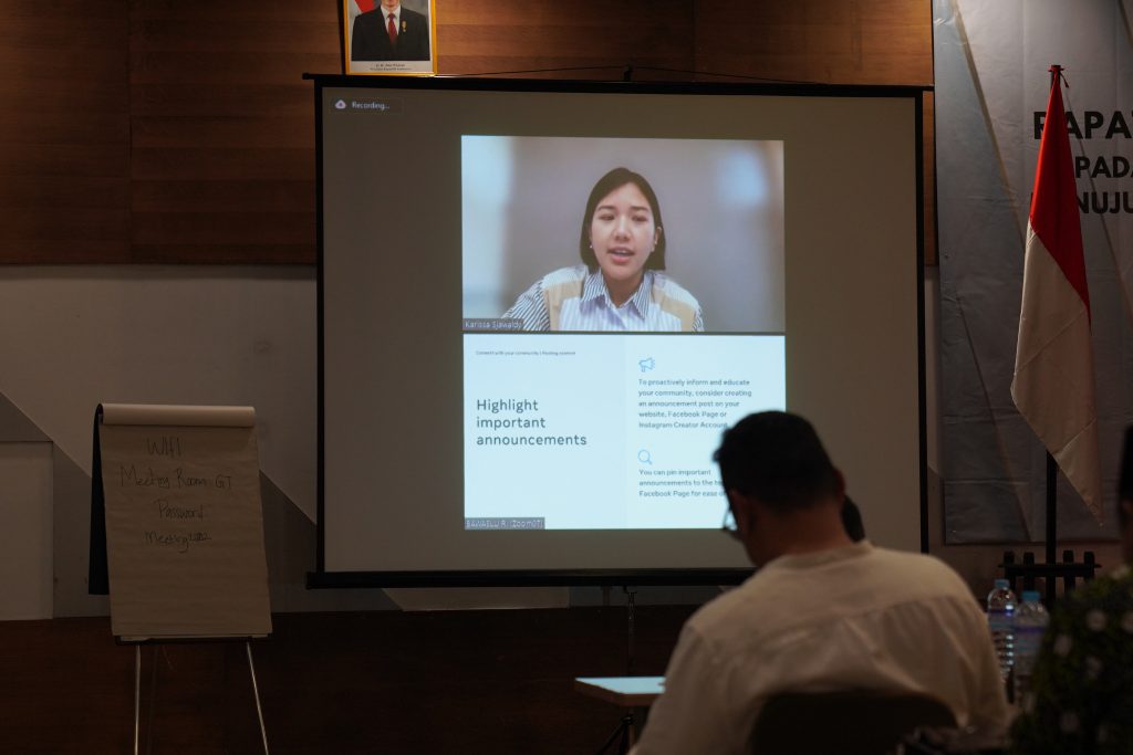 Karissa Sjawaldy (Meta Indonesia) menyampaikan pemaparan dihadapan peserta kegiatan Rapat Evaluasi Akhir Publikasi dan Pemberitaan. Foto : Humas Bawaslu RI
