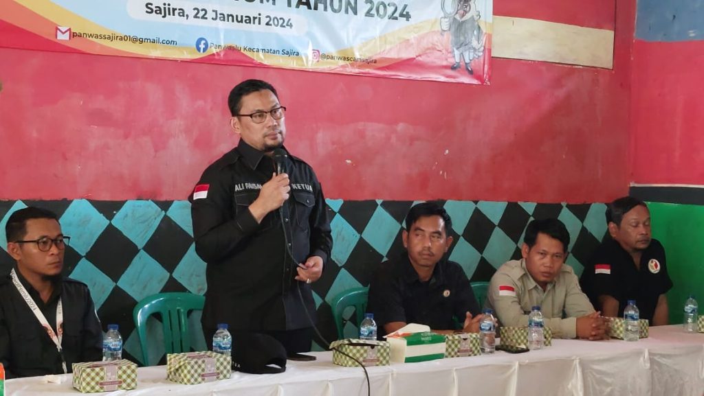 Ketua Bawaslu Provinsi Banten, Ali Faisal sedang memberikan arahan terhadap seluruh Pengawas TPS yang ada di Kecamatan Sajira, Lebak. Foto : Yusuf Indrajat
