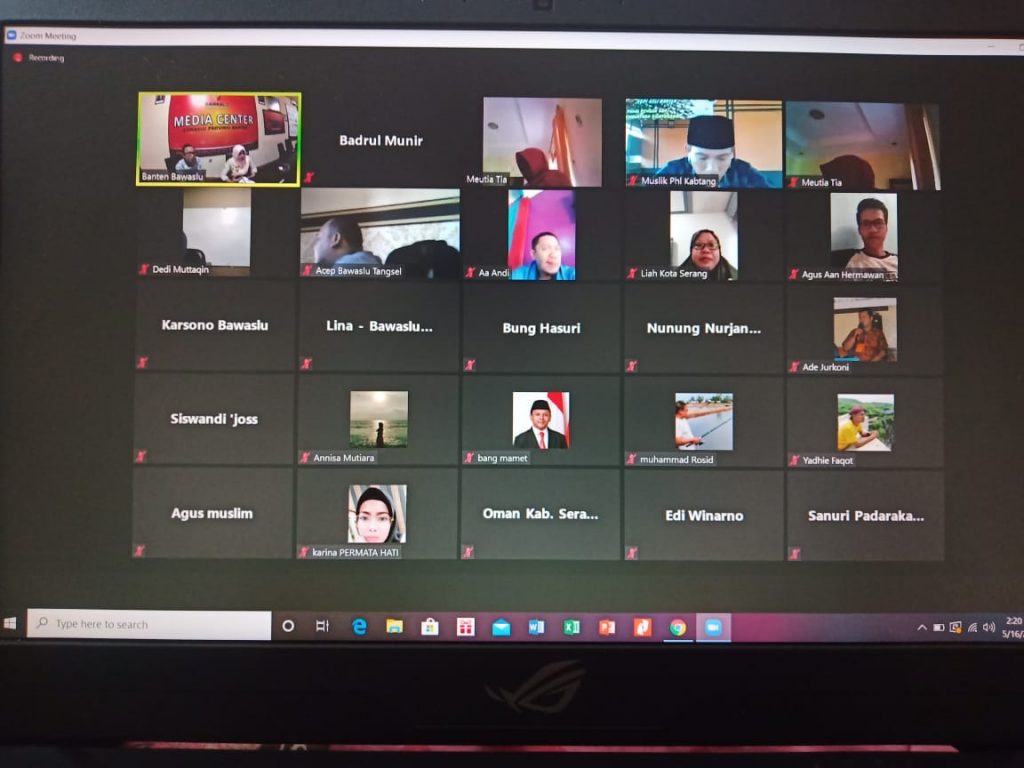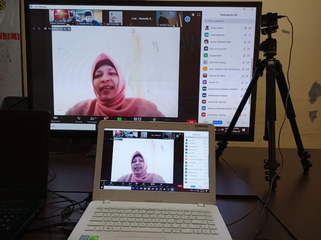 Dengan adanya pandemi Covid-19 tidak menghalangi Nuryati Solapari selaku Anggota Bawaslu Provinsi Banten dan Kordiv Pengawasan yang menjadi penanggung jawab serta supervisor dalam pembuatan riset ini untuk melakukan pelatihan khusus dengan Bawaslu Kabupaten/Kota mengenai metodologi penelitian, yang dilaksanakan pada hari Sabtu 16 Mei 2020 secara daring.