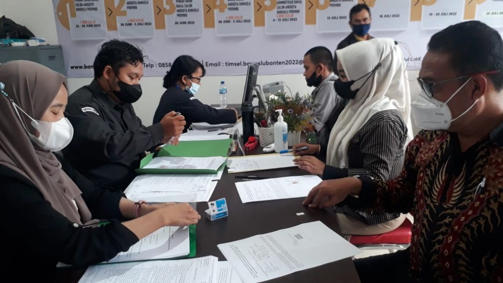 SERANG-Hari kelima penerimaan pendaftaran Bakal Calon Anggota Bawaslu Provinsi Banten, Timsel (Tim Seleksi) telah menerima sejumlah berkas pendaftaran baik yang diterima langsung melalui sekretariat timsel maupun melalui Pos Kilat Khusus dan jasa kurir lainnya. "Saat ini kami telah menerima 42 berkas pendaftaran, yang menyerahkan langsung ke kantor Timsel ada 38 Pendaftar, dan 4 berkas diterima melalui jasa kurir." Ungkap Ketua Timsel Usep Saepul Ahyar. Selasa, (28/06/2022).