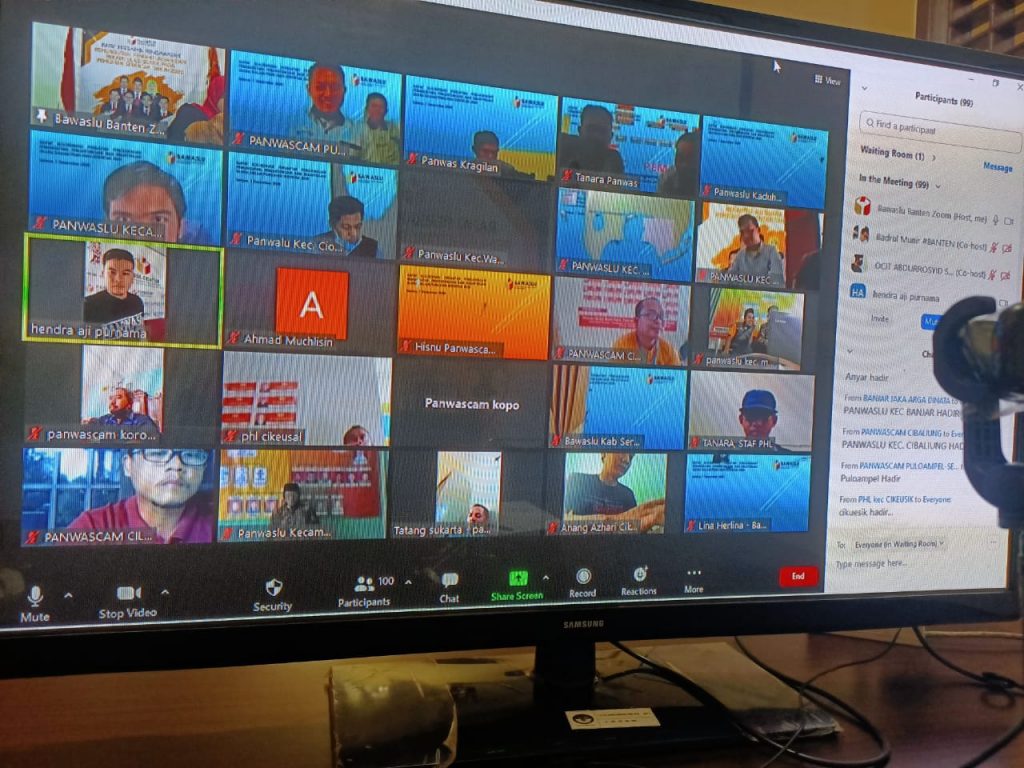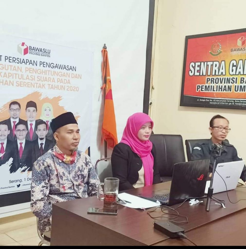 Jelang pemungutan suara Bawaslu Provinsi Banten menggelar Rapat Koordinasi Persiapan Pengawasan pemungutan, perhitungan dan rekapitulasi suara Pilkada 2020 yang diikuti oleh seluruh Bawaslu Kab/Kota dan Panwaslu Kecamatan se- Provinsi Banten secara daring, Selasa (01/12/2020).