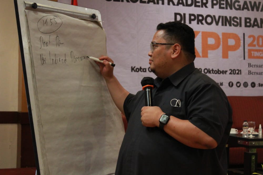 Cilegon, Badan Pengawas Pemilihan Umum – Anggota Bawaslu Republik Indonesia Rahmat Bagja hadir sebagai pemateri dalam pembelajaran sesi kedua kegiatan Sekolah Kader Pengawas Partisipatif (SKPP) tingkat menengah yang diselenggarakan di Hotel Royal Krakatau Cilegon, Senin (25/10/2021). Dalam materinya, Bagja menjelaskan tentang sejarah Pemilu di Indonesia hingga isu-isu yang terjadi saat ini.