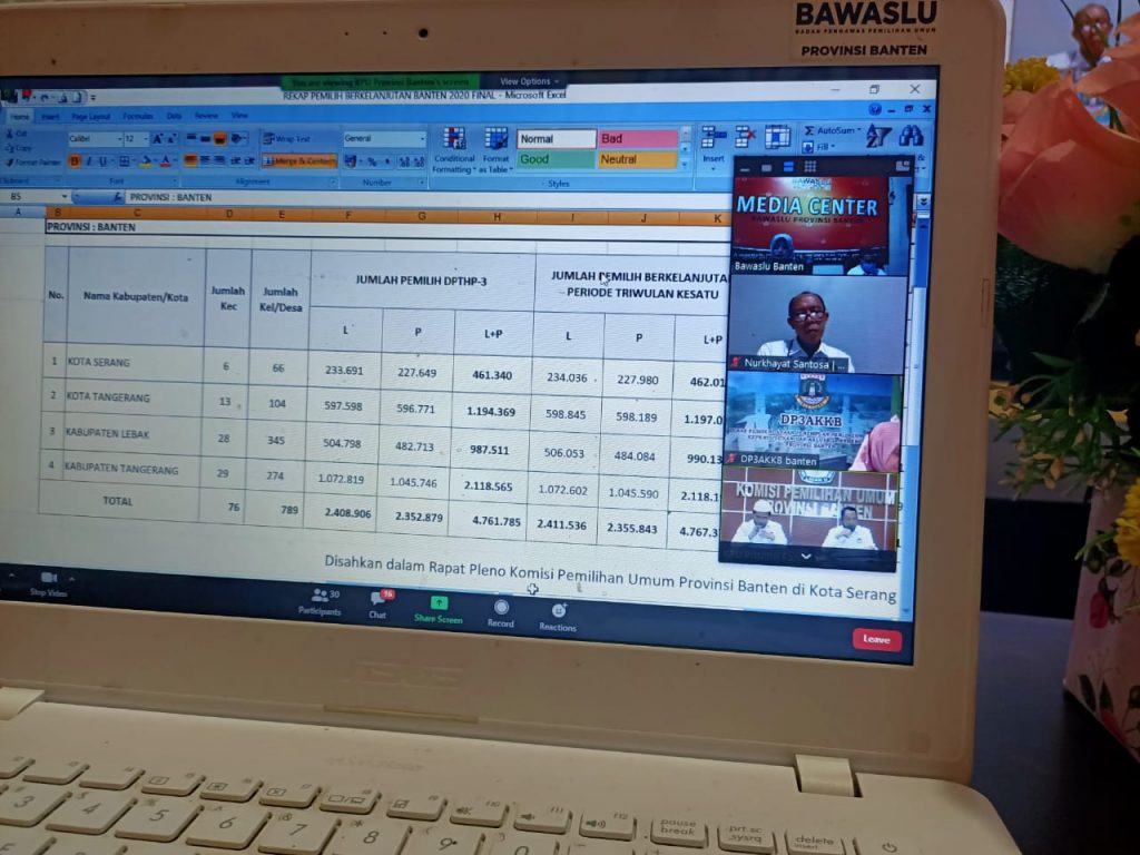 Bawaslu Provinsi Banten menghadiri Rapat Terbuka Pleno Rekapitulasi Pemutakhiran Data Pemilih Berkelanjutan triwulan kedua yang diselenggarakan oleh KPU Provinsi Banten, hadir pula pada kesempatan tersebut para pimpinan Partai Politik. Acara dibuka secara resmi oleh Ketua KPU Provinsi Banten.