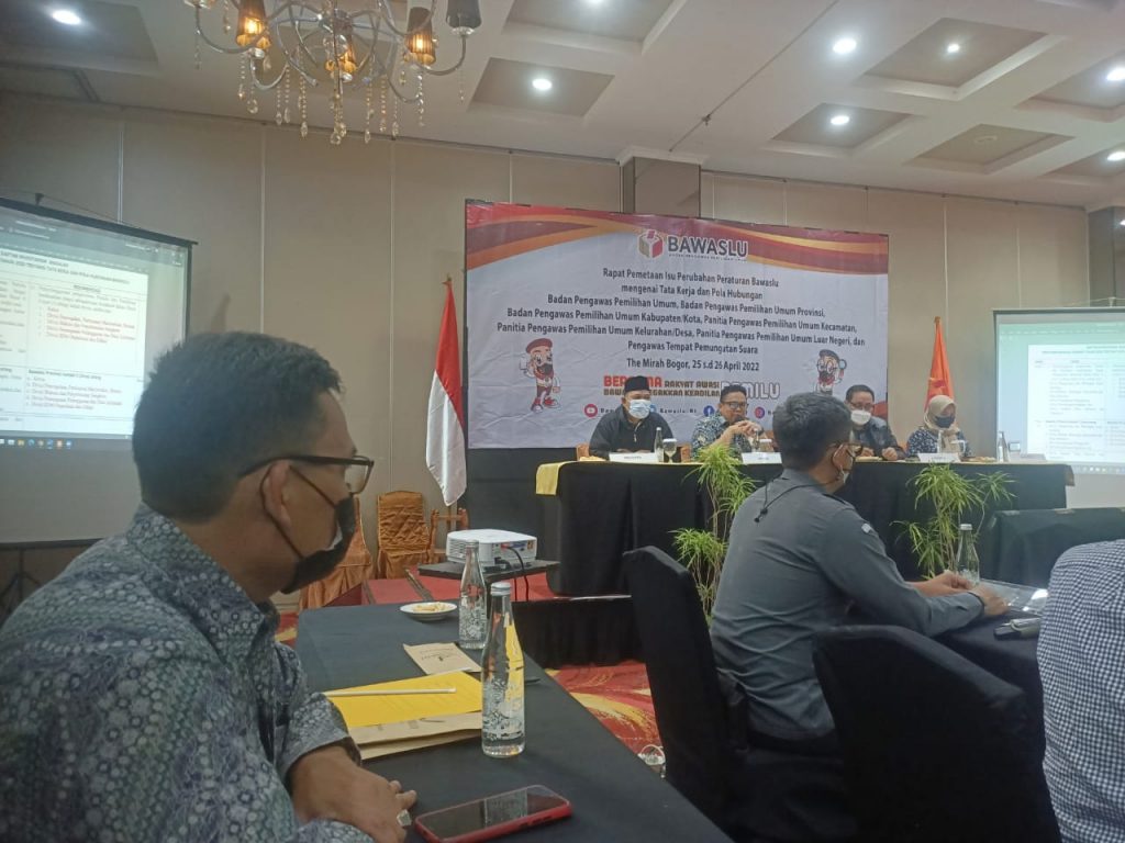 Guna mendukung arah kebijakan Bawaslu RI dan efektifitas pelaksanaan tugas, fungsi dan wewenang Bawaslu maka Bawaslu RI mengadakan rapat pemetaaan isu perubahan mengenai pola hubungan kerja Bawaslu. Rapat ini merupakan bagian dari langkah Bawaslu untuk mengidentifikasi berbagai muatan masalah dari pola hubungan kerja yang sudah berlangsung dan mencari solusi alternatif. Ada 3 Bahasan dalam diskusi ini yaitu (1). Tugas dan Fungsi Ketua. (2). Tugas dan Fungsi Koordinator Divisi dan Wakil Koordinator Divisi (3). Tugas dan Fungsi Koordinator Wilayah dan Wakil Koordinator Wilayah. ( Bogor 25-26/4/2022).