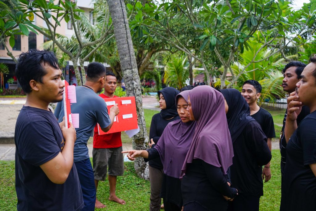 Para peserta sedang mengikuti kegiatan fun games yang bertemakan estafet kepemiluan.