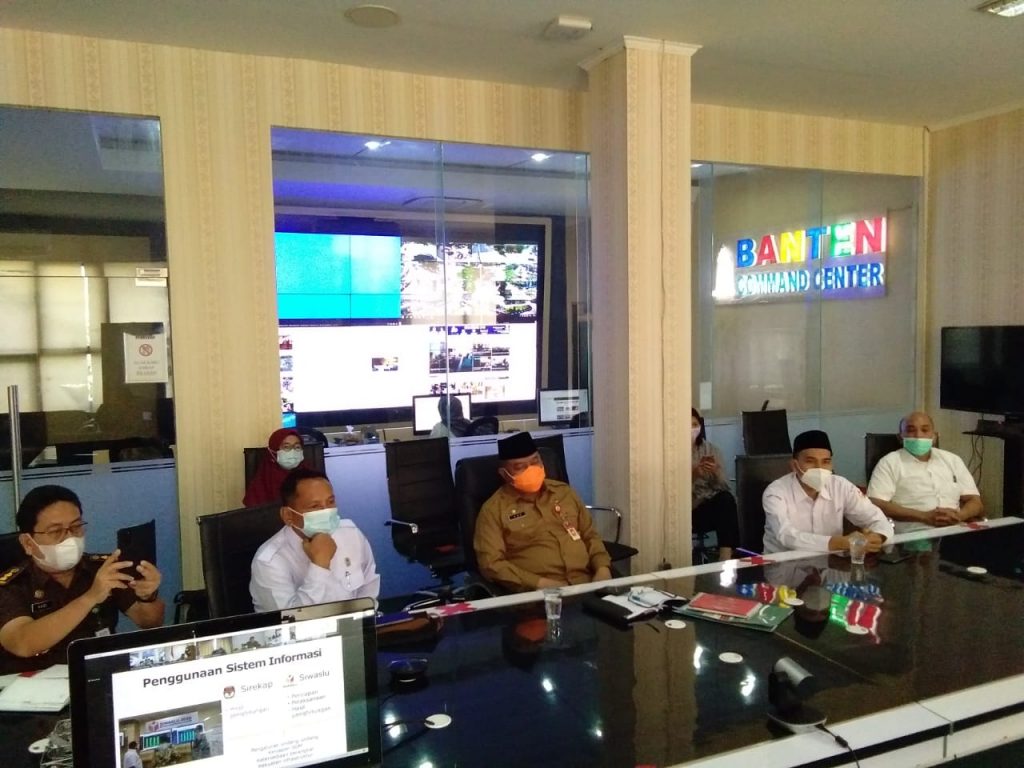 Pelaksanaan vidcon dilakukan bersama-sama dengan daftar undangan lainnya, untuk Banten dilakukan di Kantor Diskominfo Provinsi Banten yang dihadiri juga oleh Kepala Badan Kesbangpol Provinsi Banten, Wakil Kepala BIN daerah Banten, dan KPU Banten.