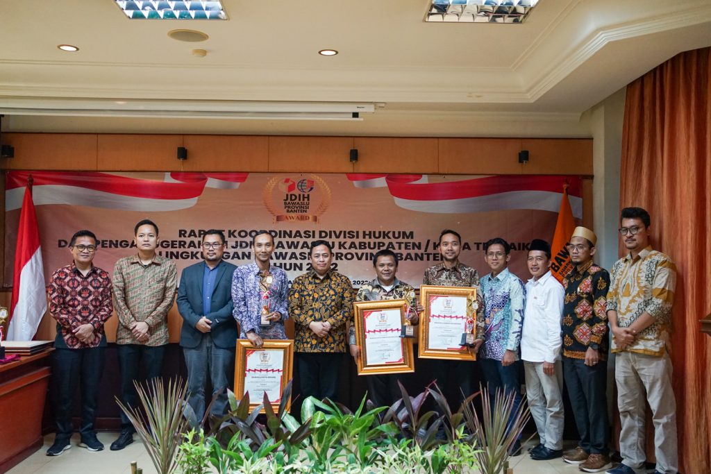 Serang, Bawaslu Provinsi Banten – Bawaslu Provinsi Banten menggelar acara Penganugerahan JDIH Awards Bawaslu Kabupaten/Kota Terbaik di Lingkungan Bawaslu Provinsi Banten, Jumat (23/12/2022). Acara penganugerahan ini merupakan bentuk apresiasi Bawaslu Provinsi Banten kepada Bawaslu Kabupaten/Kota se-Provinsi Banten atas pengelolaan JDIH dan pembentukan pojok JDIH di kantor Bawaslu Kabupaten/Kota masing-masing.