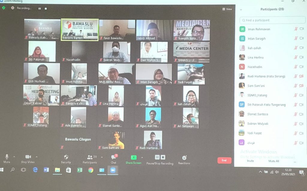 Serang - Bawaslu Provinsi Banten menggelar Rapat Pembahasan Perbawaslu 15 Tahun 2020 tentang tata cara pembinaan dan pengawasan terhadap pelaksanaan tugas pengawas pemilihan umum di Ruang Rapat Kantor Bawaslu Provinsi Banten. Selasa, (25/05/2021) secara daring.
