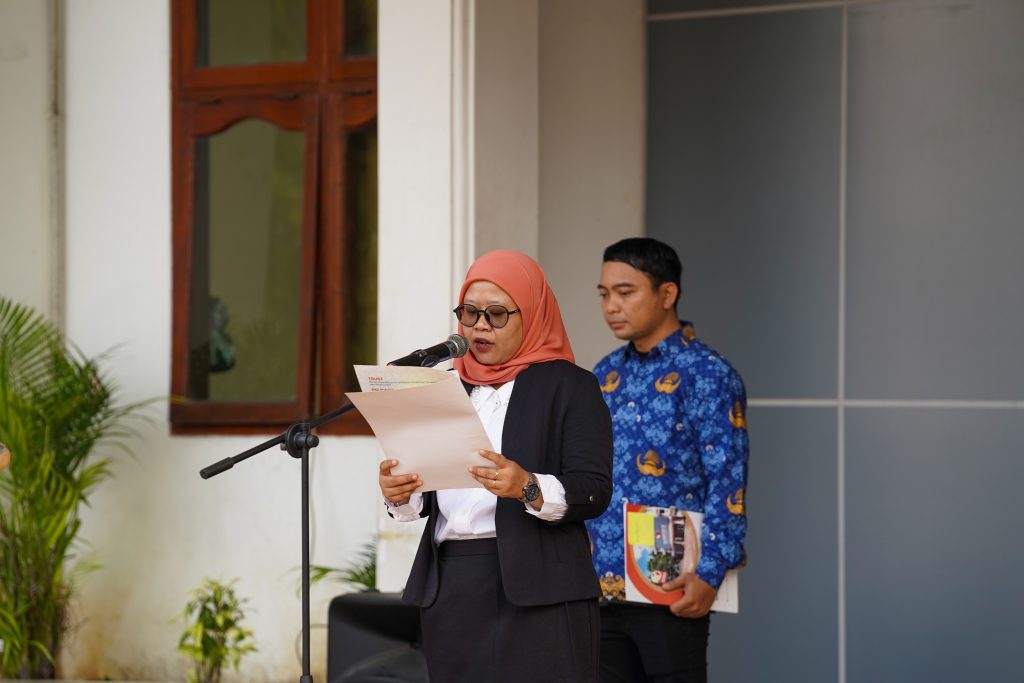 Anggota Bawaslu Provinsi Banten Liah Culiah saat bertindak sebagai pembina upacara Hari Kebangkitan Nasional (Harkitnas) ke-117, Senin (20/5/2025)