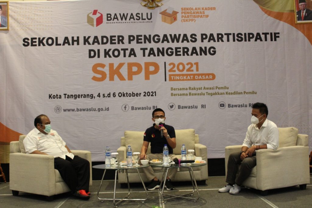 Dalam pelatihan Sekolah Kader Pengawas Partisipatif (SKPP) materi yang diberikan tidak lepas dari pemilu, demokrasi dan lembaga penyelenggara pemilu. Khusus materi lembaga penyelenggara pemilu kali ini dipaparkan oleh Anggota Bawaslu Provinsi Banten Badrul Munir bersama Ketua Bawaslu Tangerang Selatan Acep, dan Anggota Bawaslu Kabupaten Lebak,Sukarsono. Selasa, (05/10/2021).