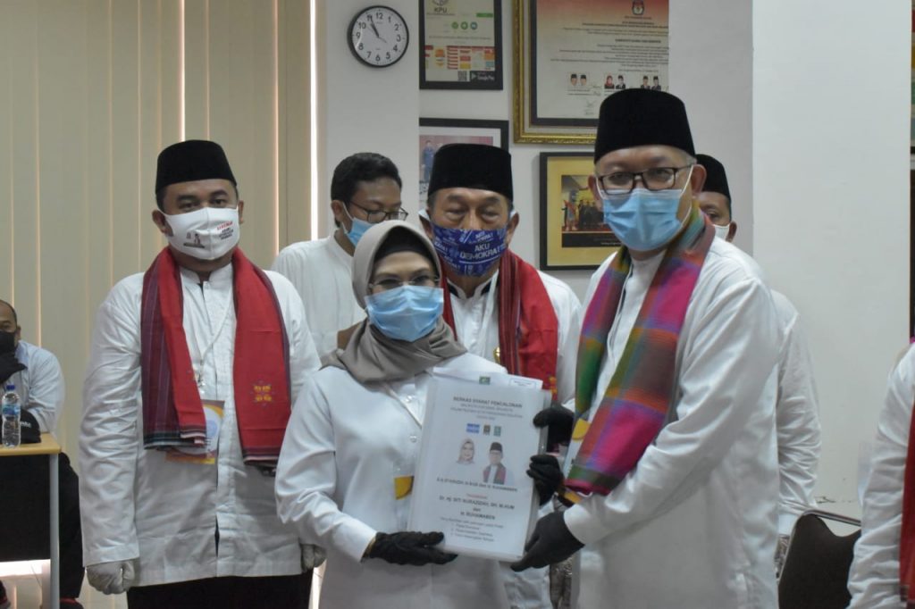 Pengawasan tahapan pencalonan hari kedua di Kota Tangerang Selatan sesuai rencana jadwal dan informasi yang diterima hari ini Sabtu, (5/9/2020) telah dilakukan pendaftaran oleh Bapaslon Siti Nur Azizah-Ruhamaben yang hadir pada pukul 10.45 di Kantor KPU Kota Tangerang Selatan. Paslon ini didukung oleh tiga Partai yaitu Demokrat, PKS dan PKB.